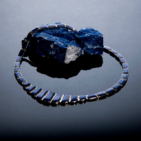 Each piece begins with natural lapis lazuli from the Chilean Andes and is shaped entirely by hand. Our process includes stone selection, cutting, carving, polishing, and, when required, inlay and silver setting — traditional lapidary techniques used for both jewelry and sculptural objects.